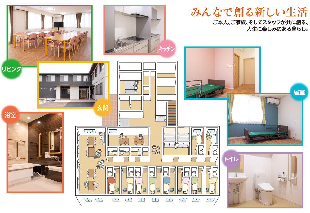 | 共用施設 | リビング、浴室・脱衣室、洗濯室、相談室、ペレットストーブ、エレベーター、他 | |||||